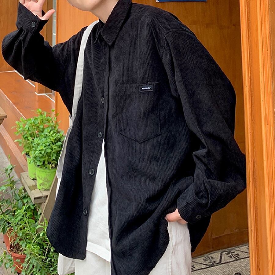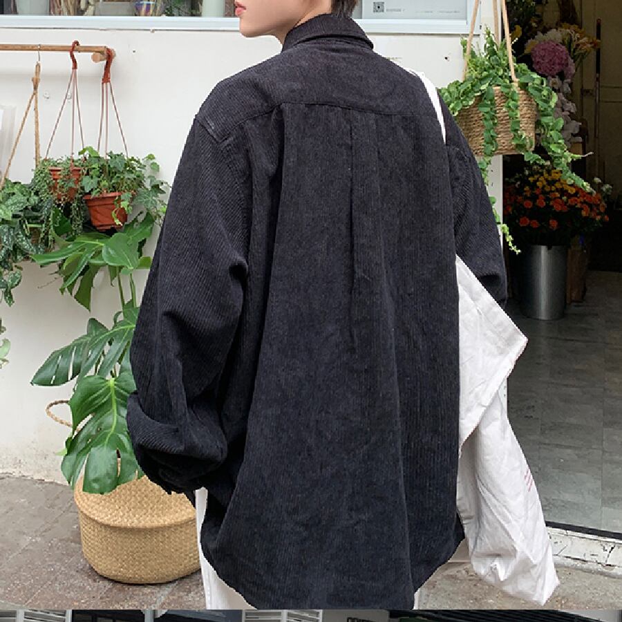 【韓国通販 dgo】コーデュロイオーバーサイズシャツ 5カラー ネイビー/ブラウン/ブラック/ヴィンテージタンジェリン/グレー(M1428)