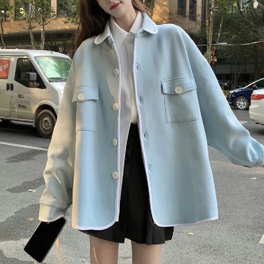 【韓国通販 dgo】胸ポケットPOLOカラージャケット3カラー グレー/ネイビー/レイクブルー(W1434)気分はジャケット!
