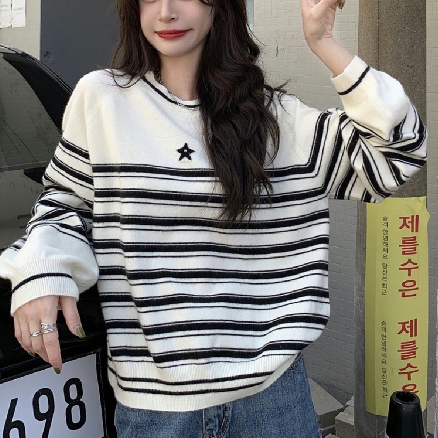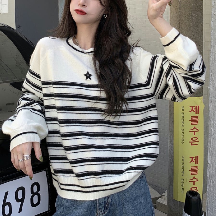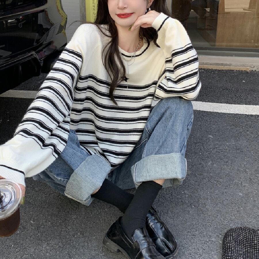 【韓国通販 dgo】モノトーンストライプトップス ホワイト(W1435)