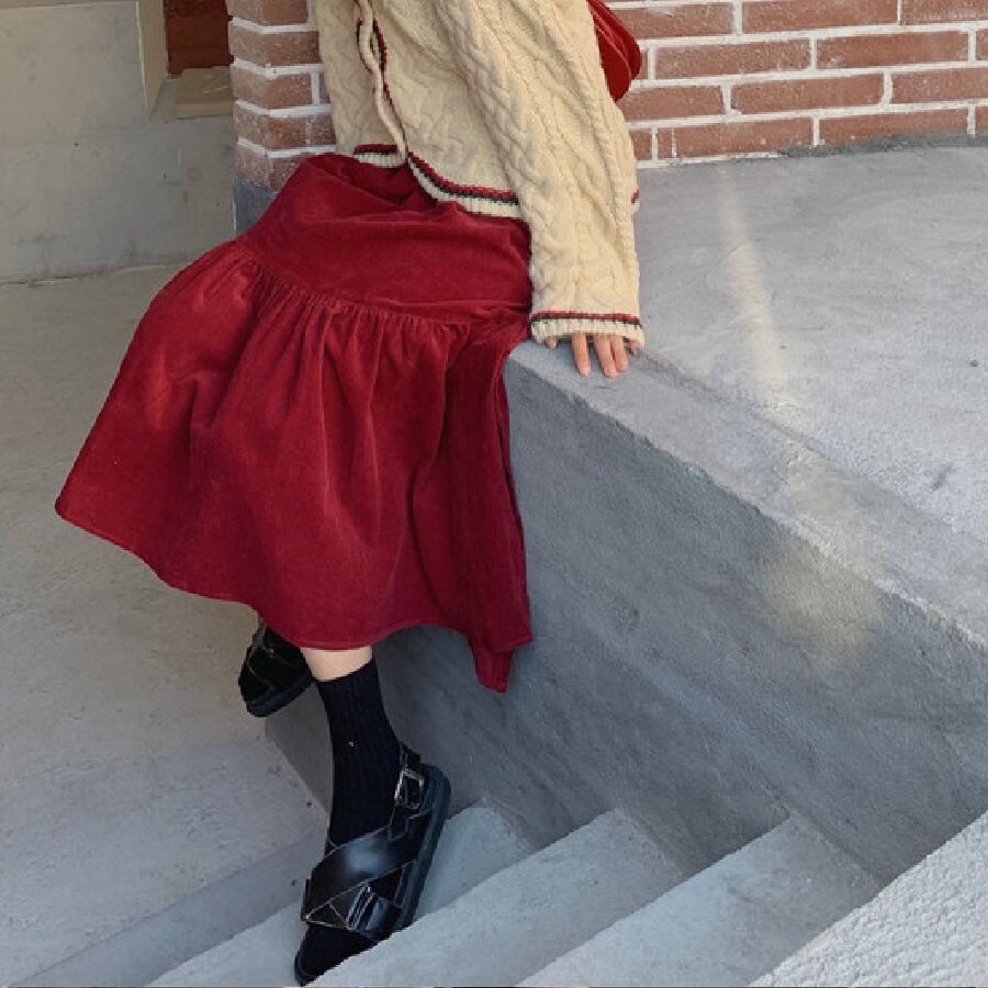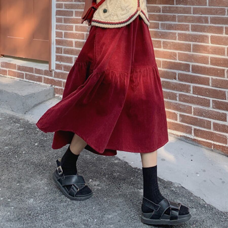 【韓国通販 dgo】コーデュロイフレアスカート レッド(W1440)