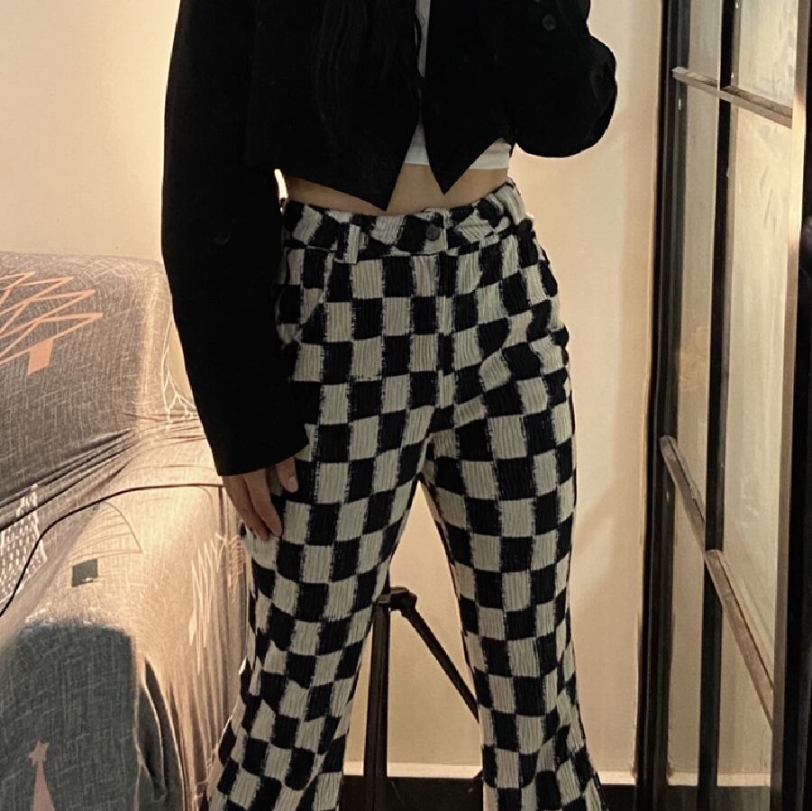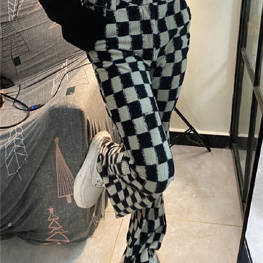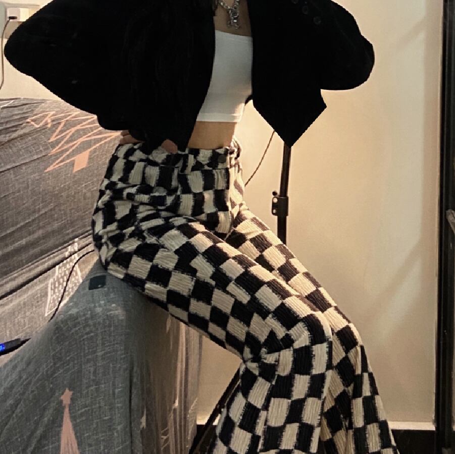 【韓国通販 dgo】チェッカーパターン フレアパンツ ホワイト(W1465)