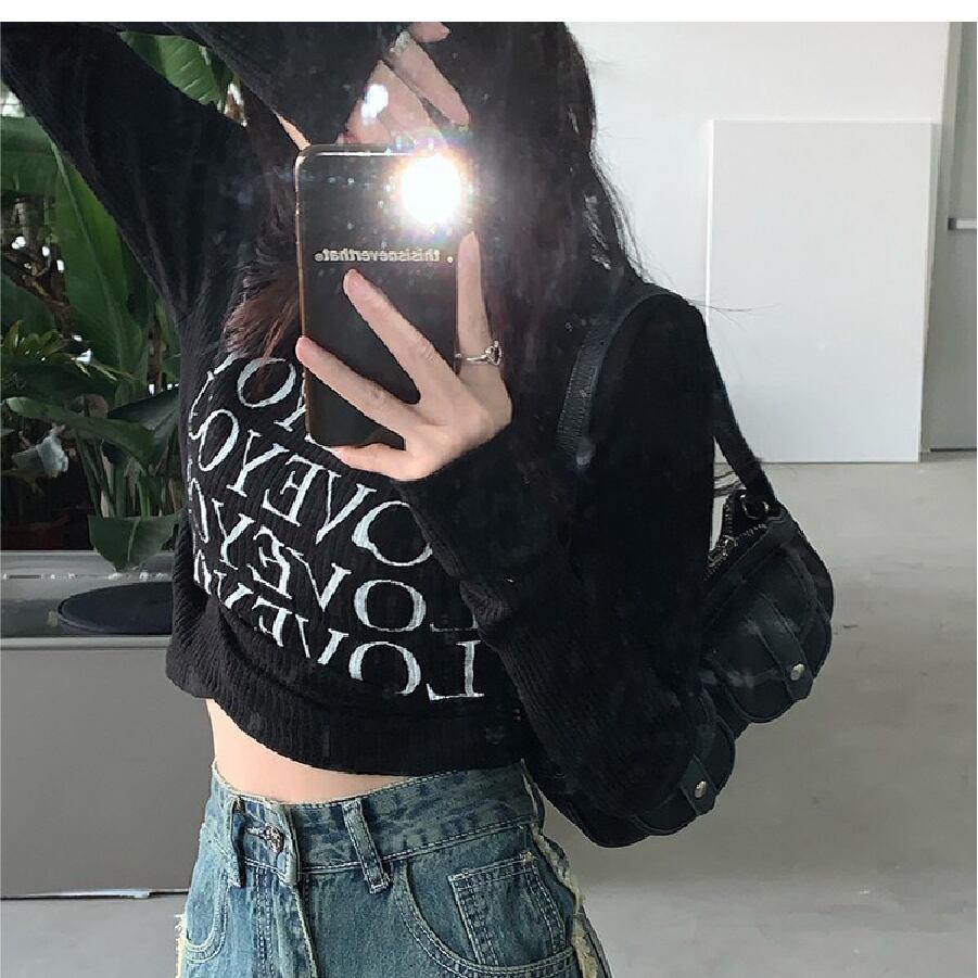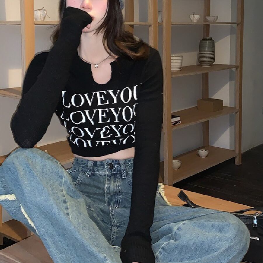 【韓国通販 dgo】Uネック ロゴプリント インナートップス ブラック(W1471)