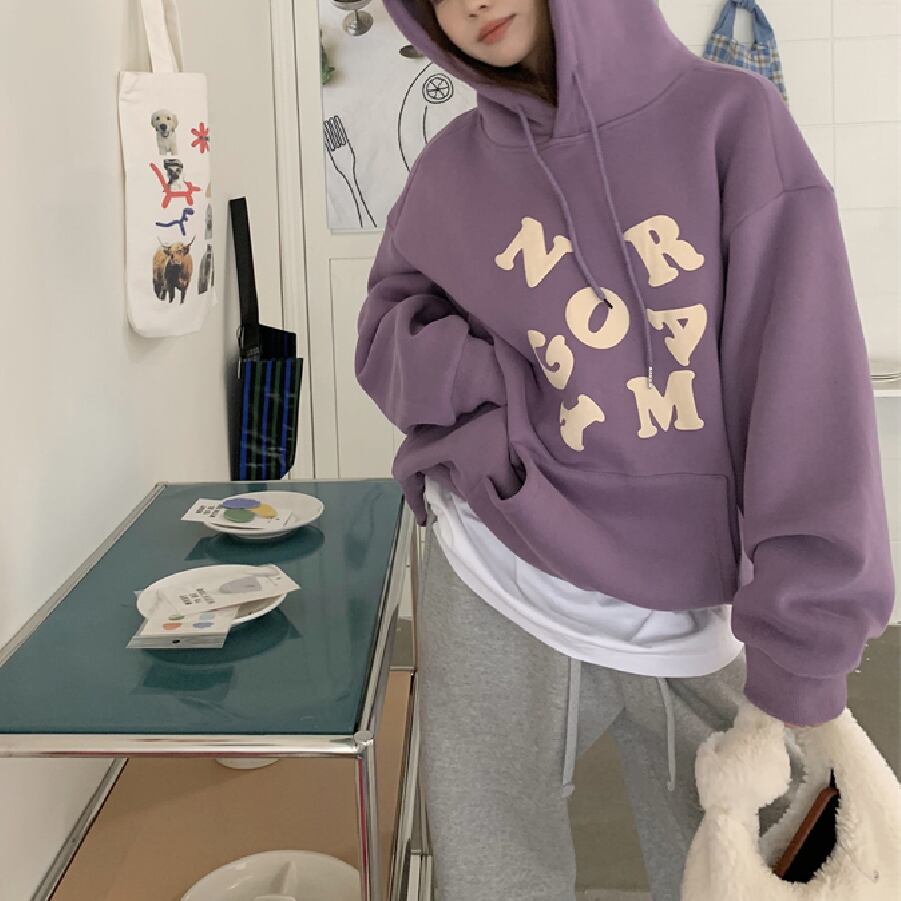 【韓国通販 dgo】イングリッシュロゴ シンプルフーディー 2カラー パープル/ブラック(W1472)