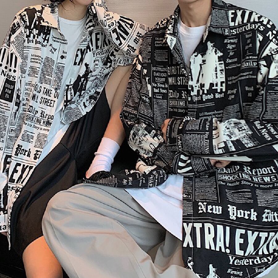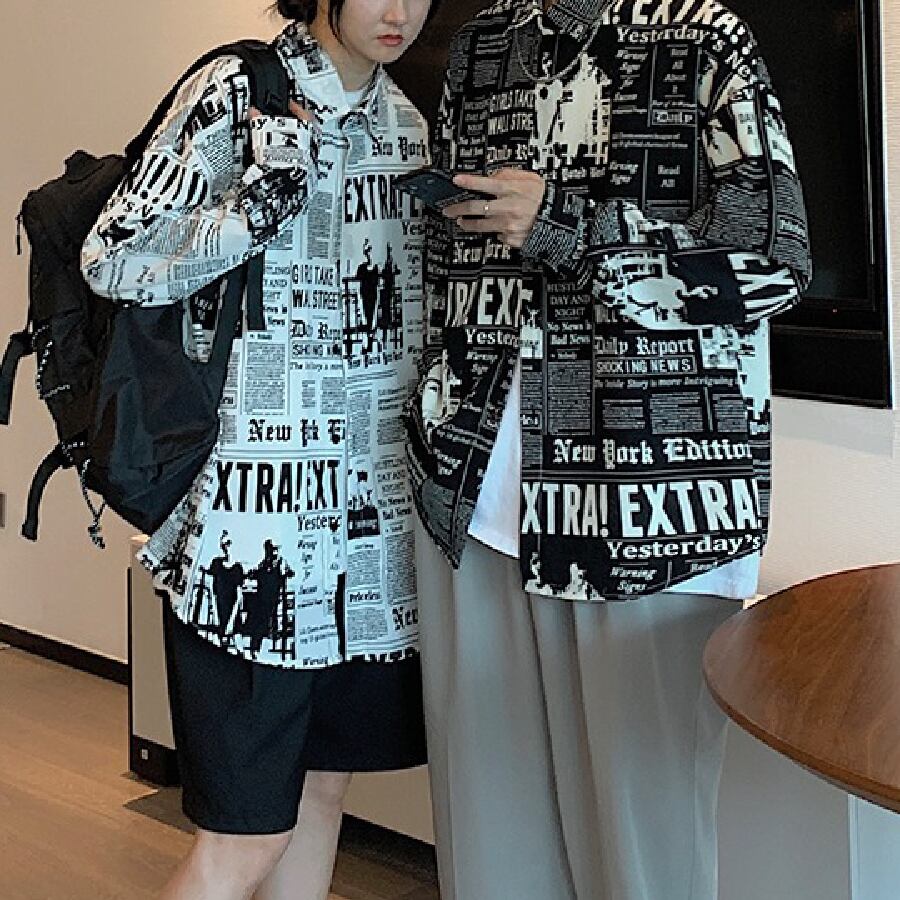 【韓国通販 dgo】ユニセックスレタープリントカップルシャツ2カラー ホワイト/ブラック(M1478)