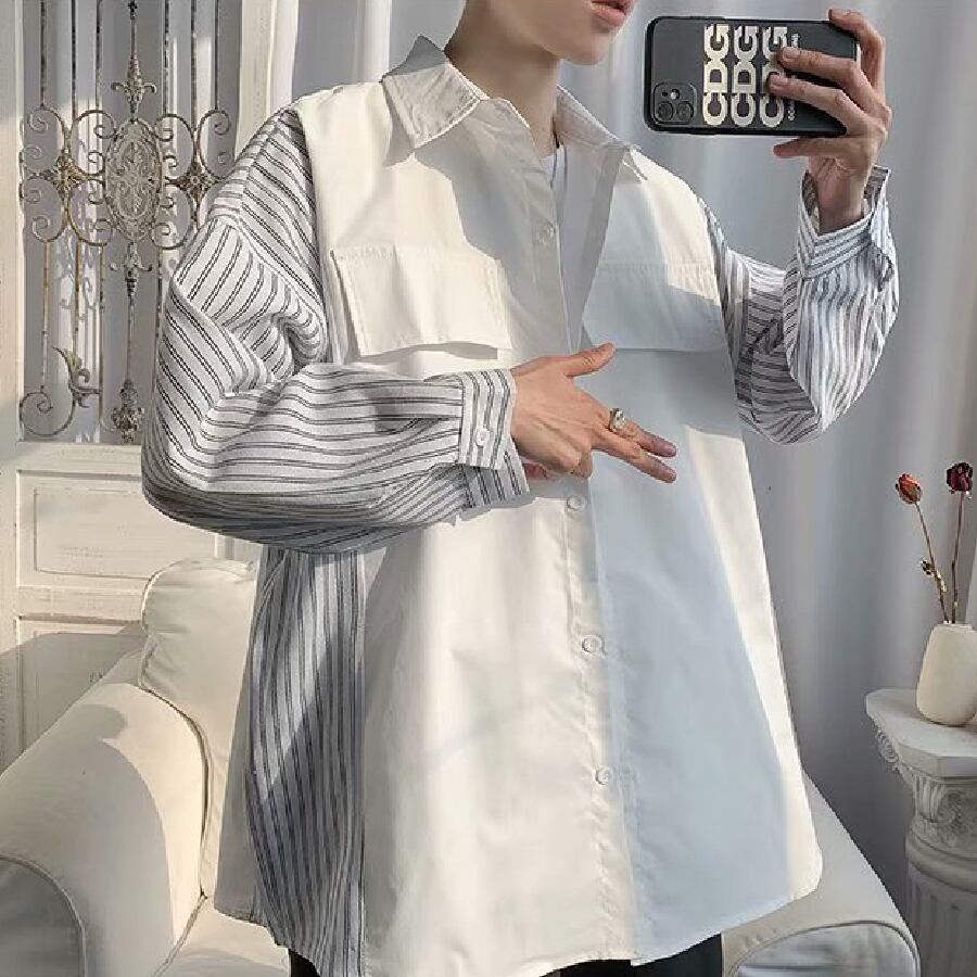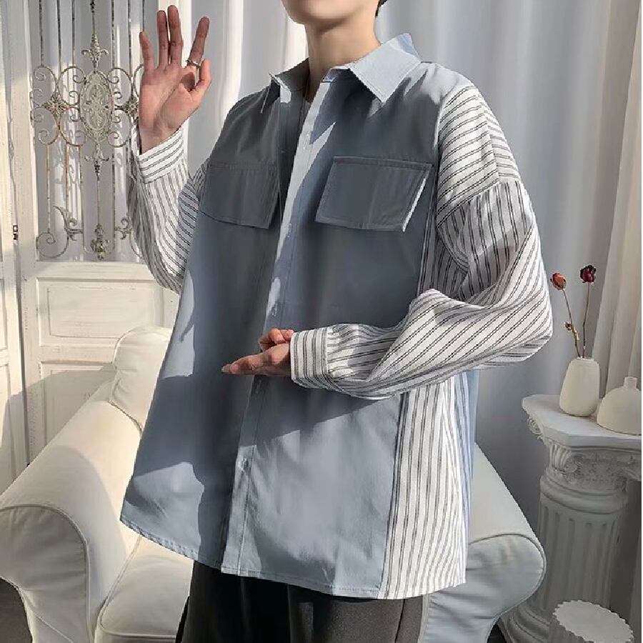 【韓国通販 dgo】ストライプ デザインシャツ3カラー ブラック/ブルー/ホワイト(M1482)