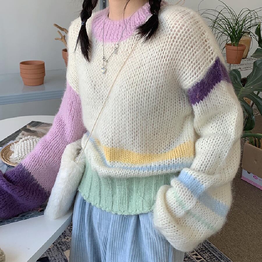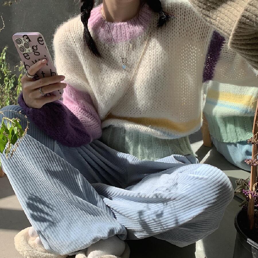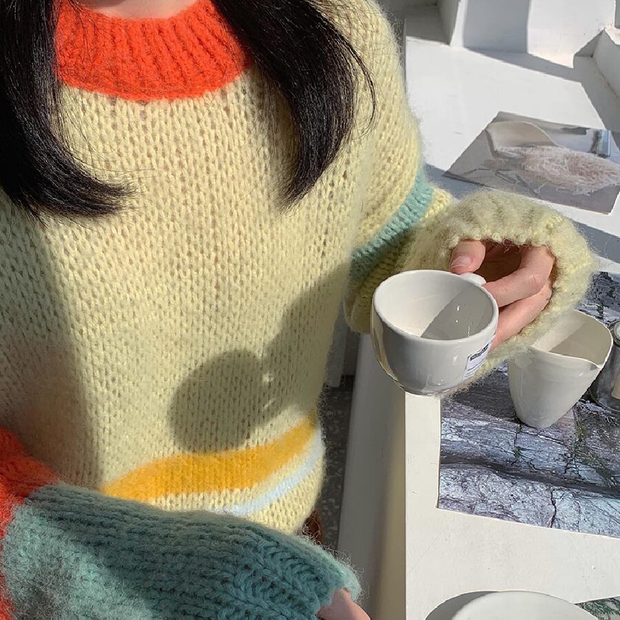 【韓国通販 dgo】カラフルショートニット 2カラー秋冬新作 ライトイエロー/オフホワイト(W1505)