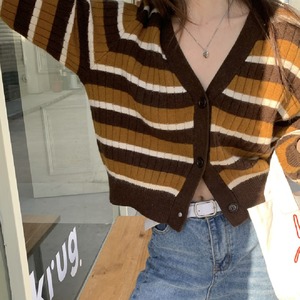 【韓国通販 dgo】Vネック ストライプ ショートカーディガン 2カラー ピンク/イエロー(W1513)
