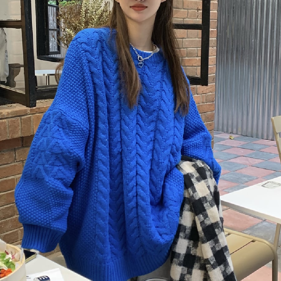 【韓国通販 dgo】ラウンドネックツイストニットセーター 2カラー ベージュ/ブルー(W1542)
