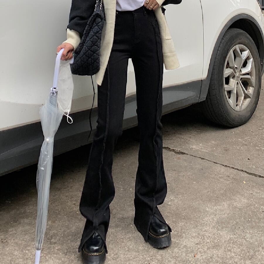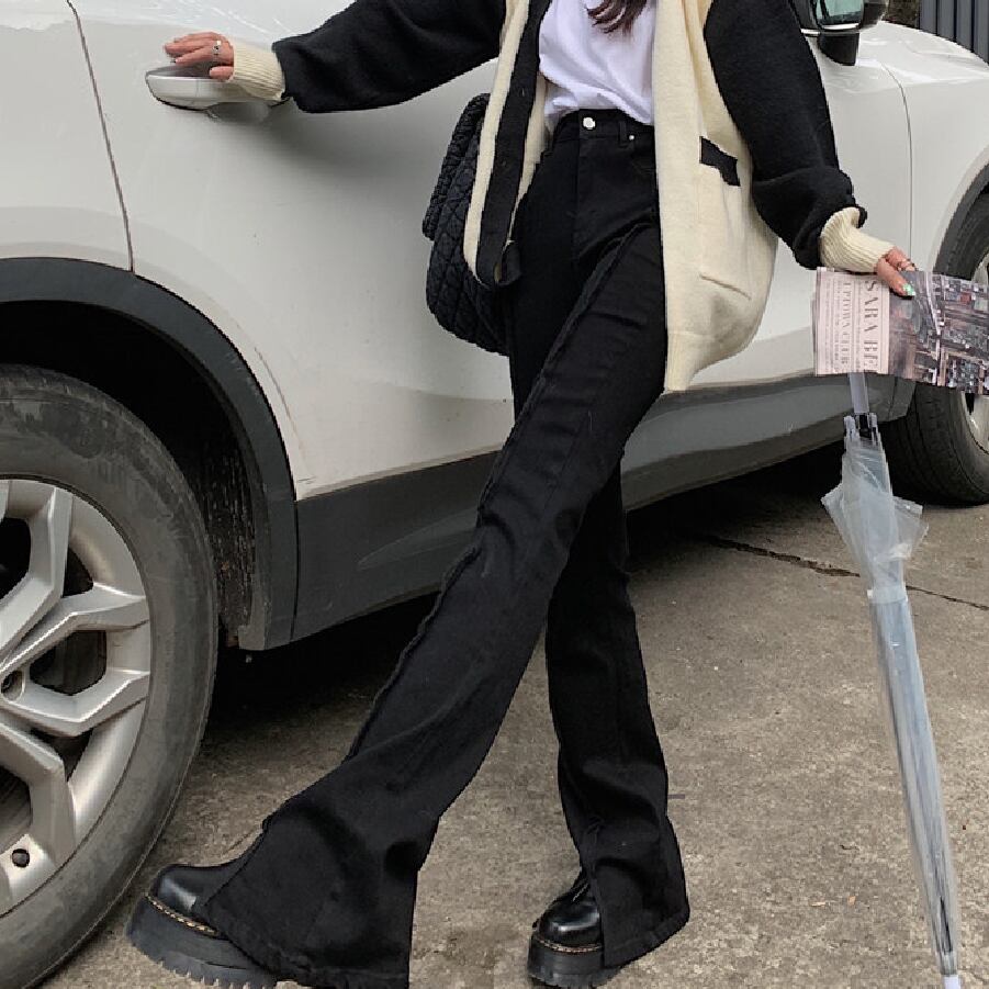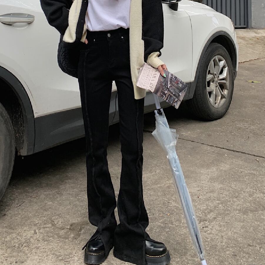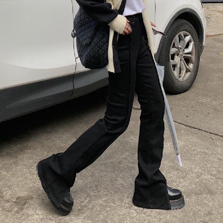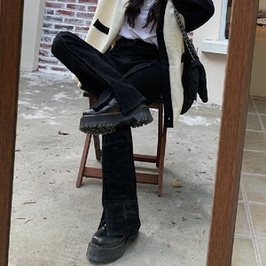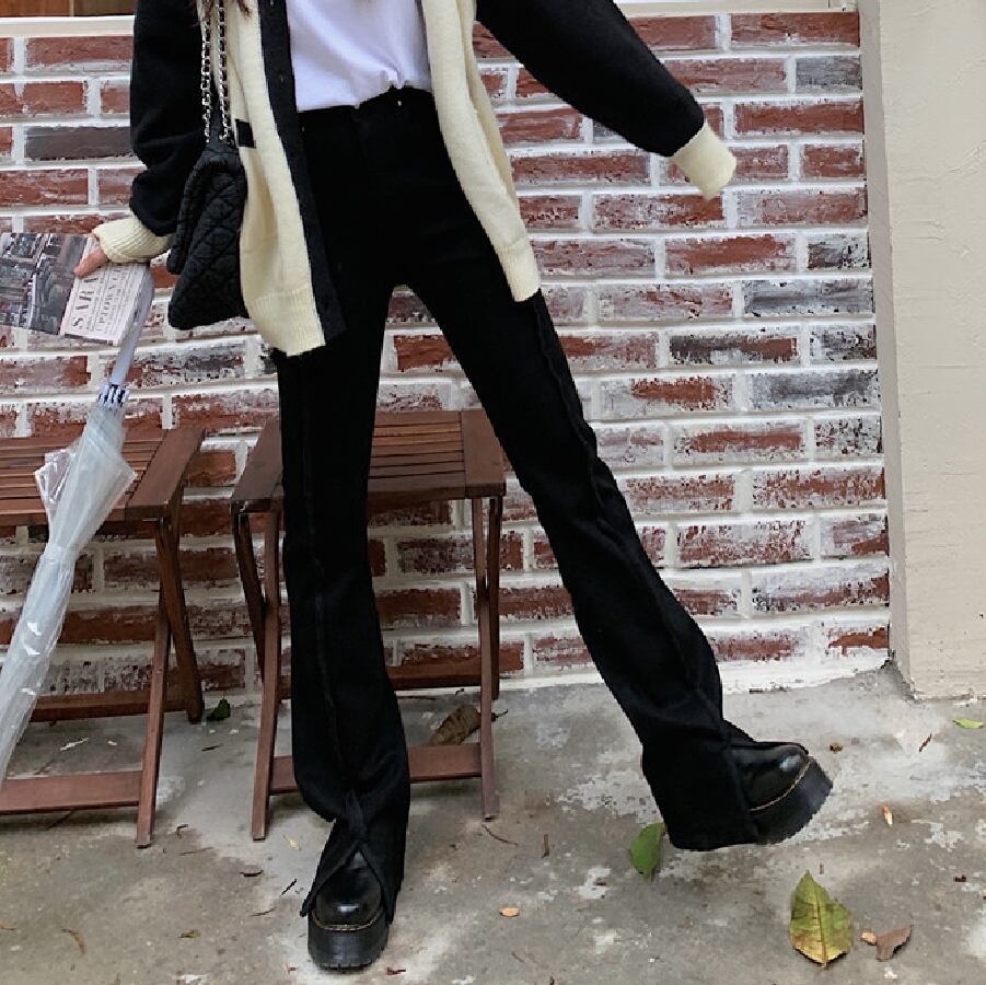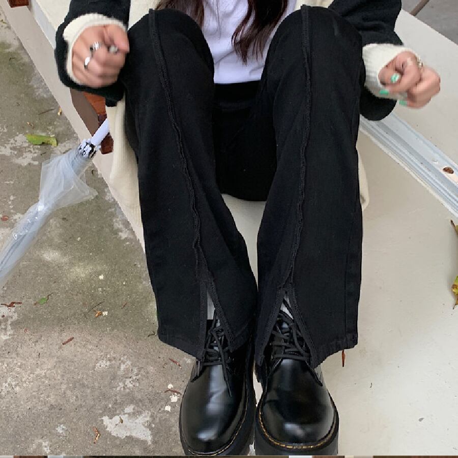 【韓国通販 dgo】ハイウエスト スリット ブラックパンツ 秋冬新作(W1546)