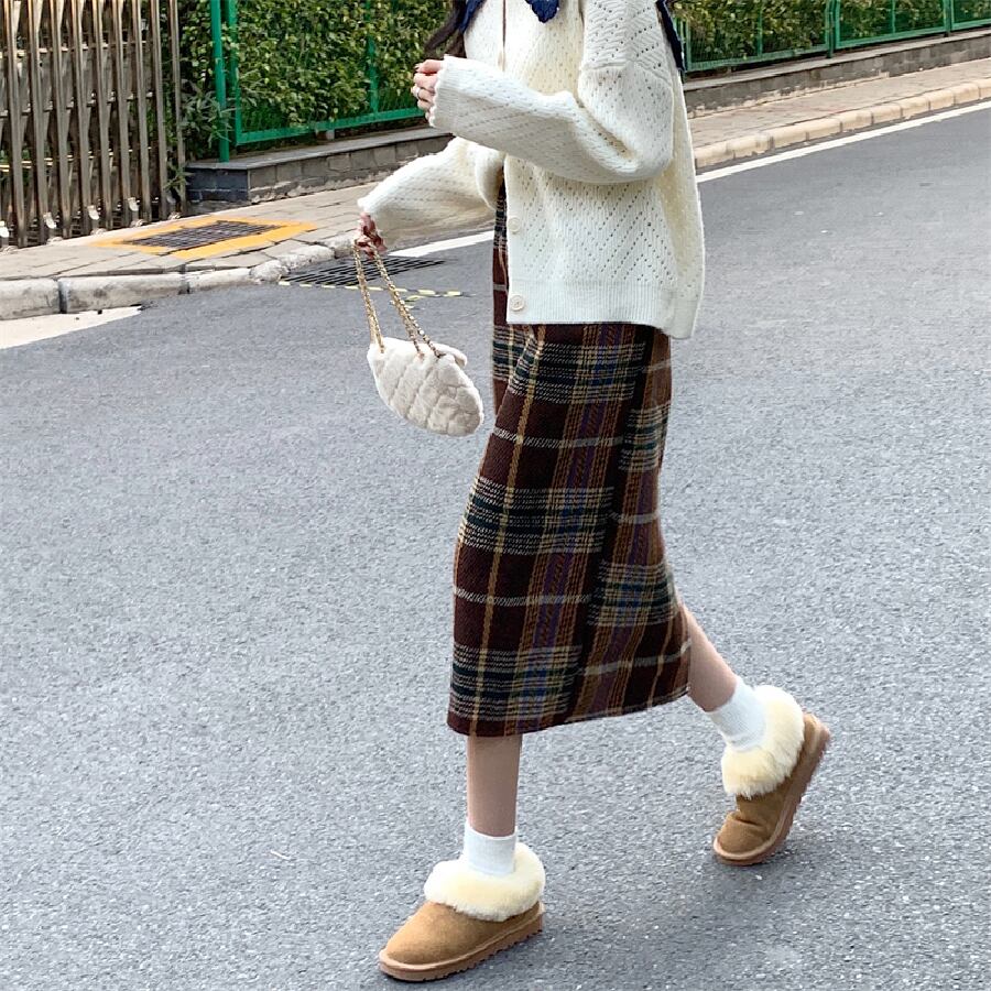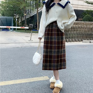 【韓国通販 dgo】チェック柄ロングニットスカート 2カラー グリーン/オレンジ(W1550)
