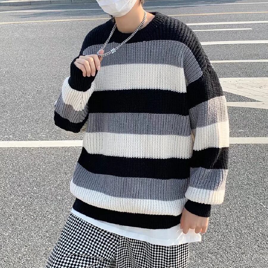 【韓国通販 dgo】オーバーサイズ ストライプニット 3カラー ブラウン/ブルー/ブラック(M1569)