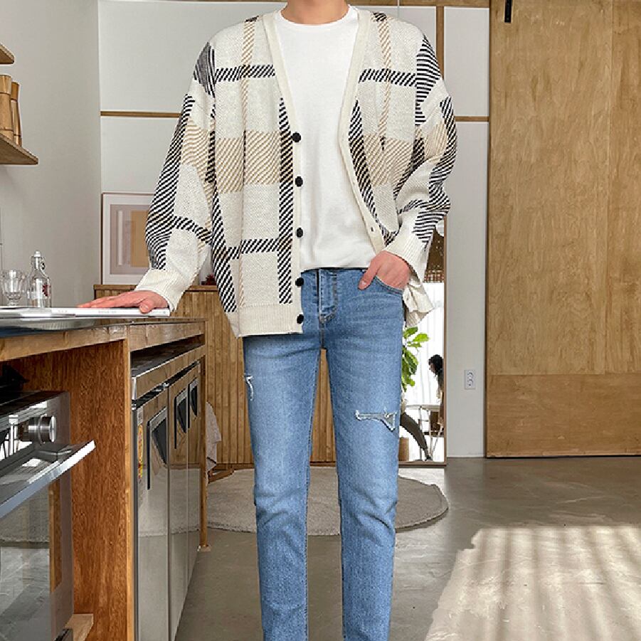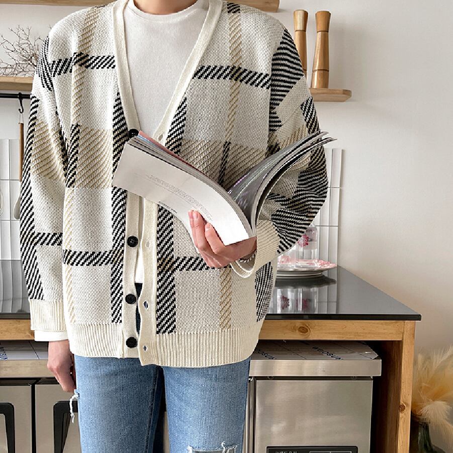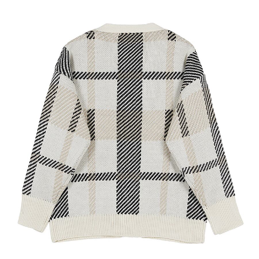 【韓国通販 dgo】チェック柄ニットカーディガン 2カラー 秋冬新作 ブラック/オフホワイト(M1572)
