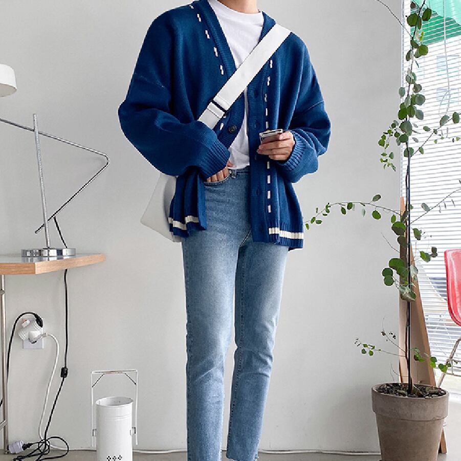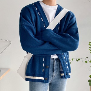 【韓国通販 dgo】Vネックニットカーディガン2カラー 秋冬新作 ブルー/ブラック(M1574)