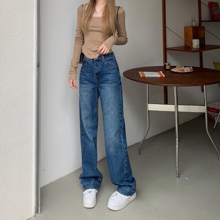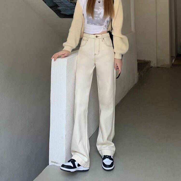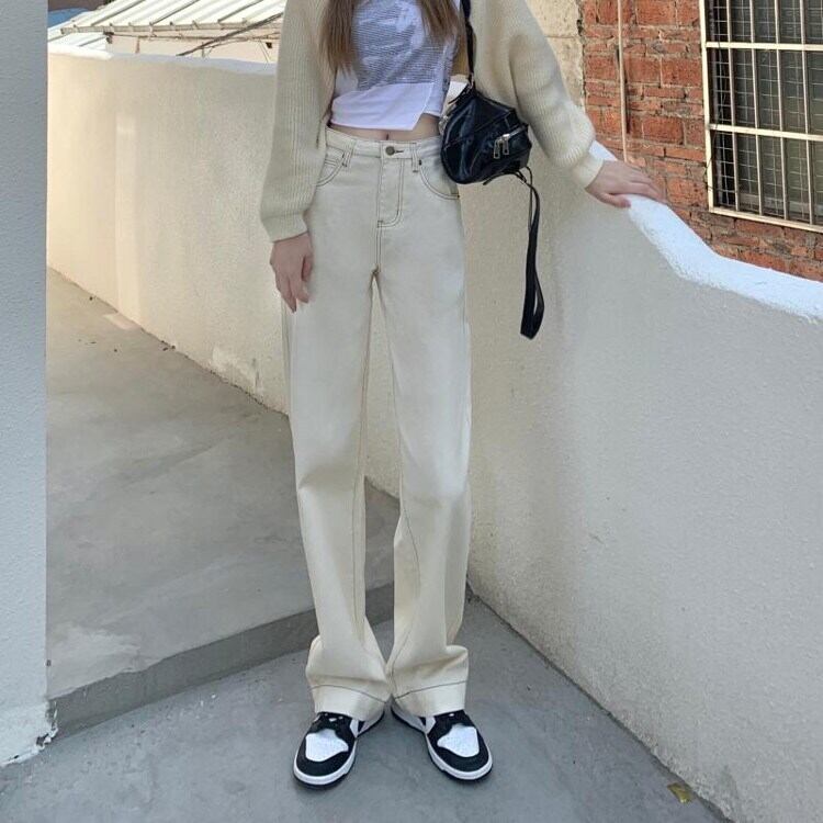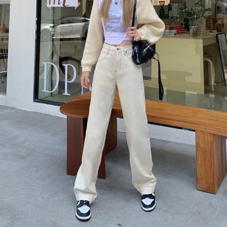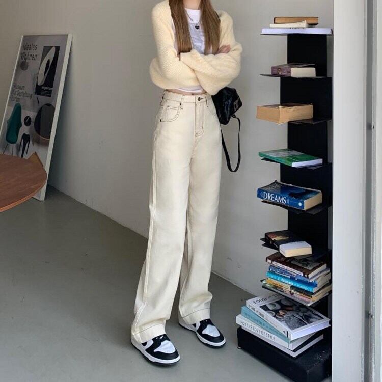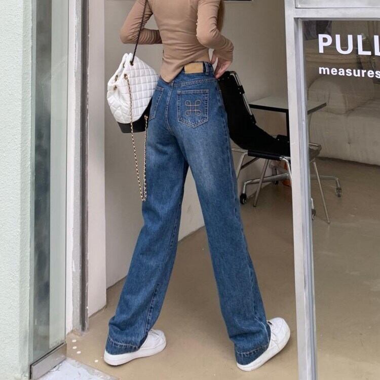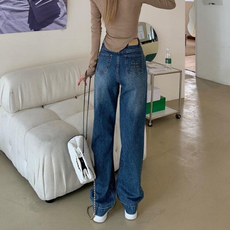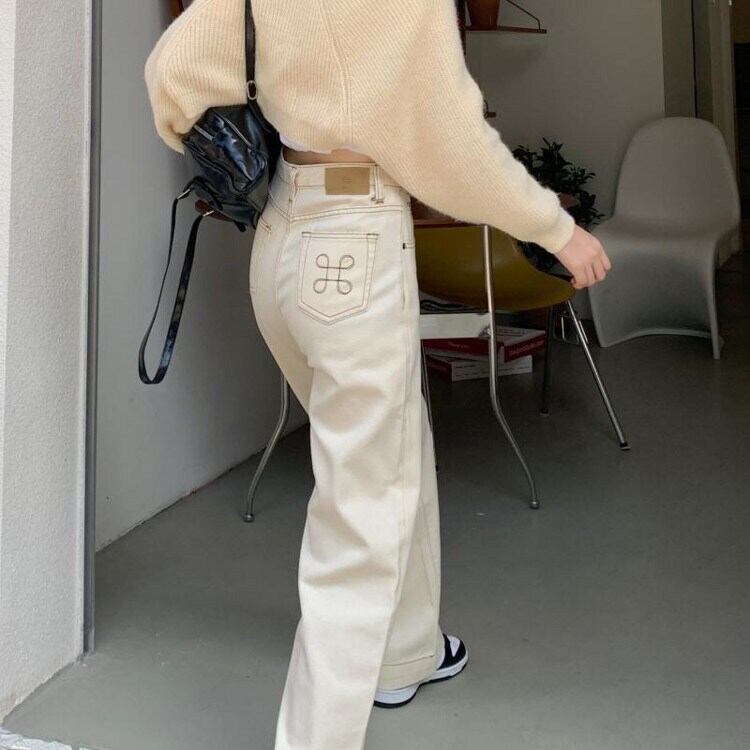 【韓国通販 dgo】刺繍ポケット ストレートデニムパンツ 2カラー アイボリー/ヴィンテージブルー(W1588)