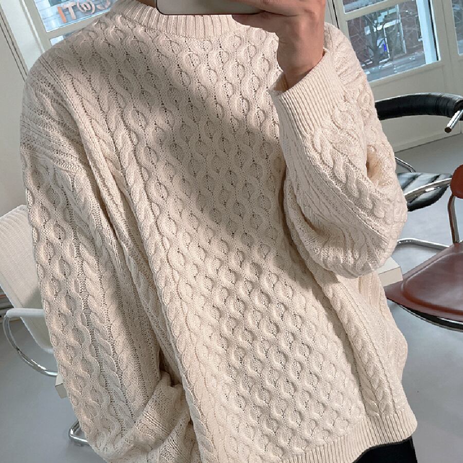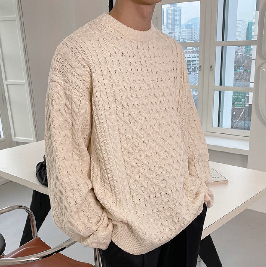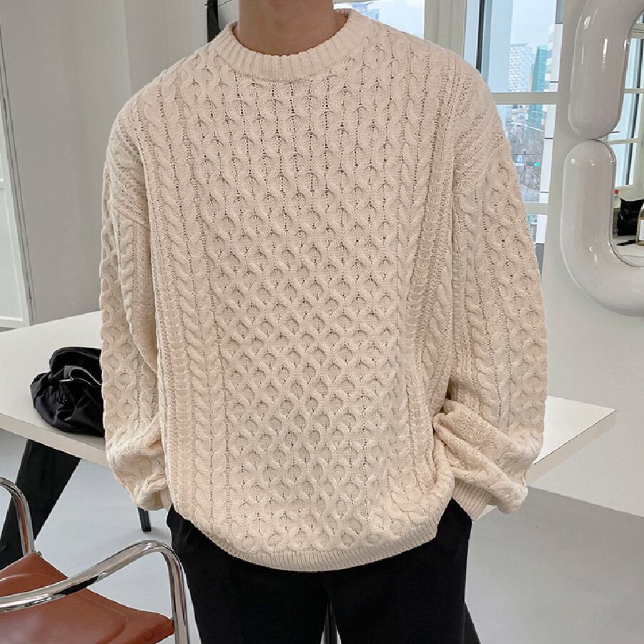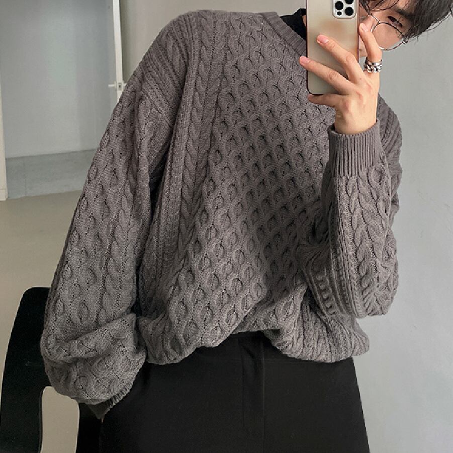 【韓国通販 dgo】ラウンドネックセーター メンズ厚手2カラー グレー/アイボリー(M1606)