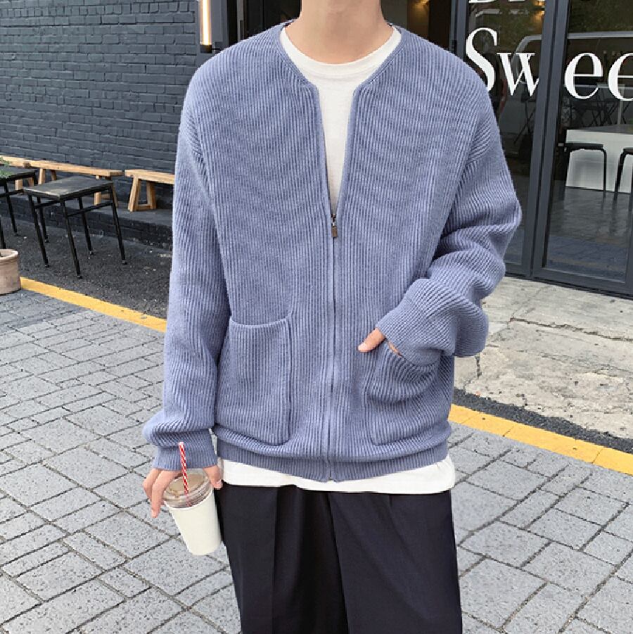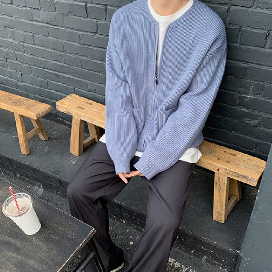 【韓国通販 dgo】ダブルポケット ニットカーディガン ブルー(M1607)