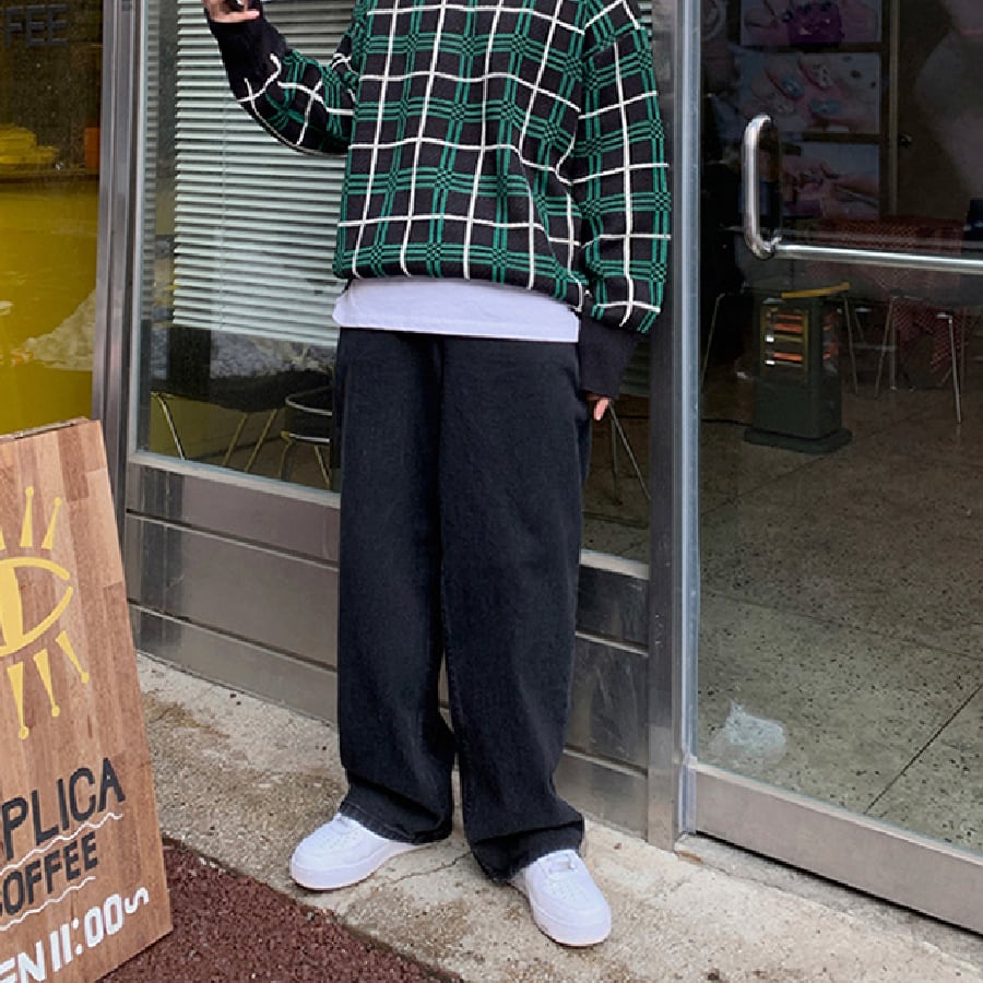 【韓国通販 dgo】ストリートワイドレッグパンツ メンズ2カラー グレー/ブラック(M1610)