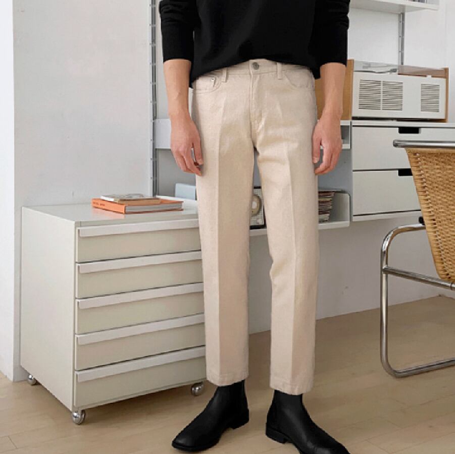 【韓国通販 dgo】ストレートクロップドパンツ メンズ秋冬新作 カーキ(M1617)