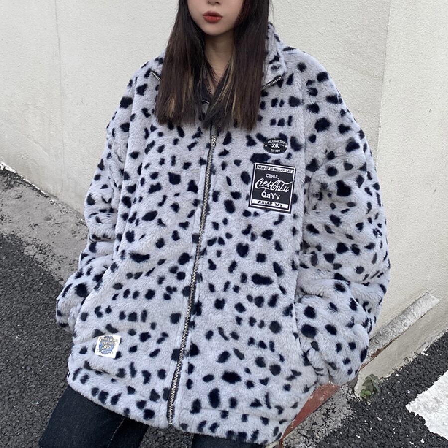 【韓国通販 dgo】レオパード キルティングコットン ジャケット ユニセックス グレー×ヒョウ柄(M1621)気分はジャケット!
