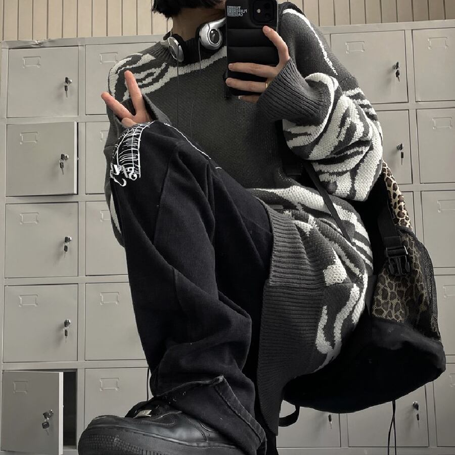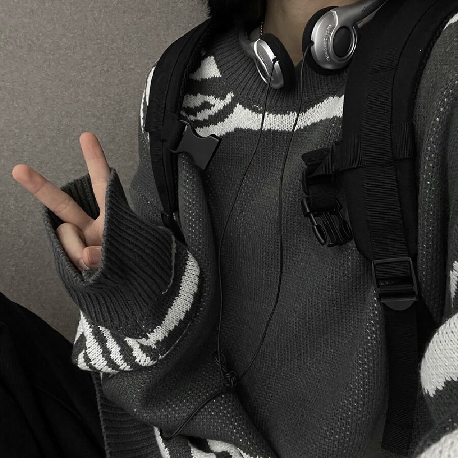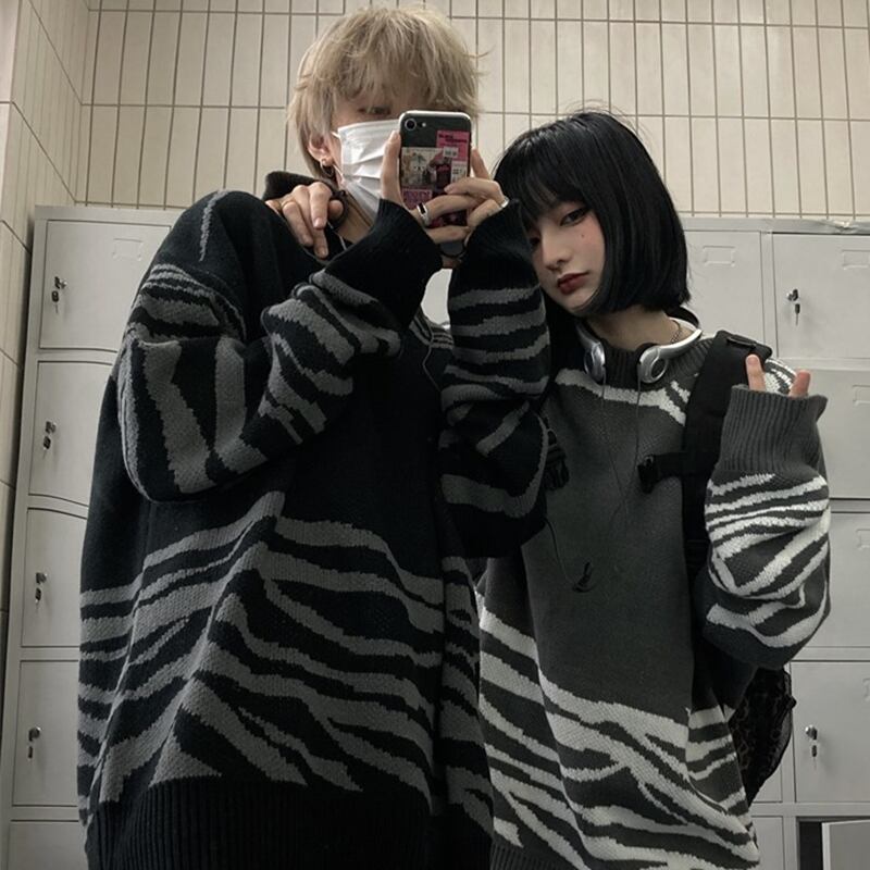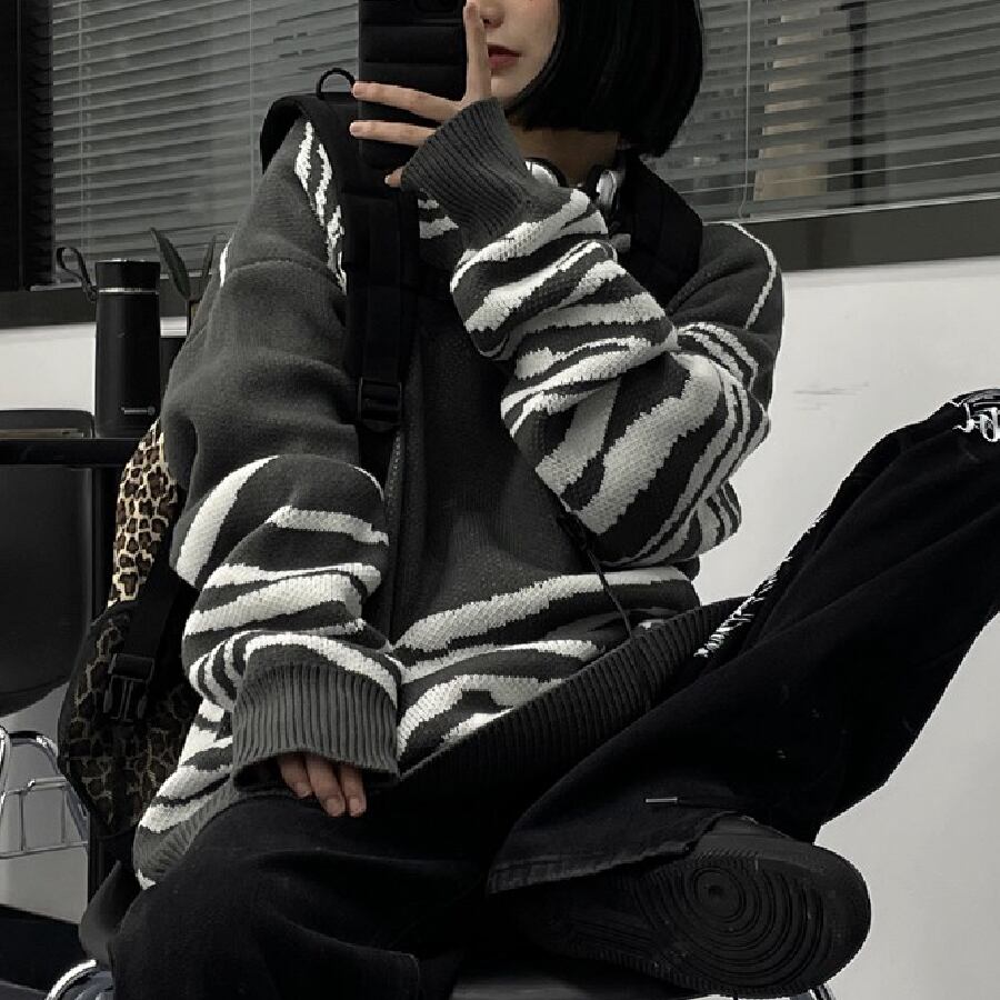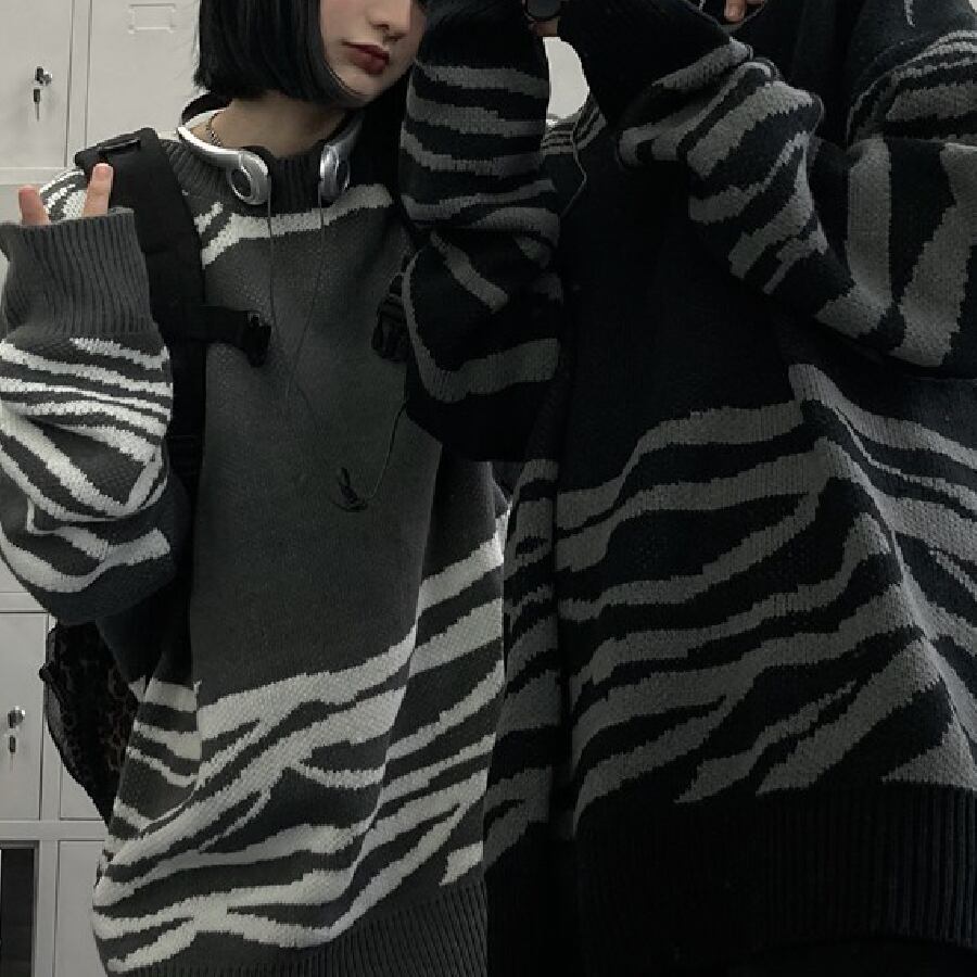 【韓国通販 dgo】ゼブラ柄 カップル プルオーバーセーター 2カラー ブラック/ダークグレー(M1623)
