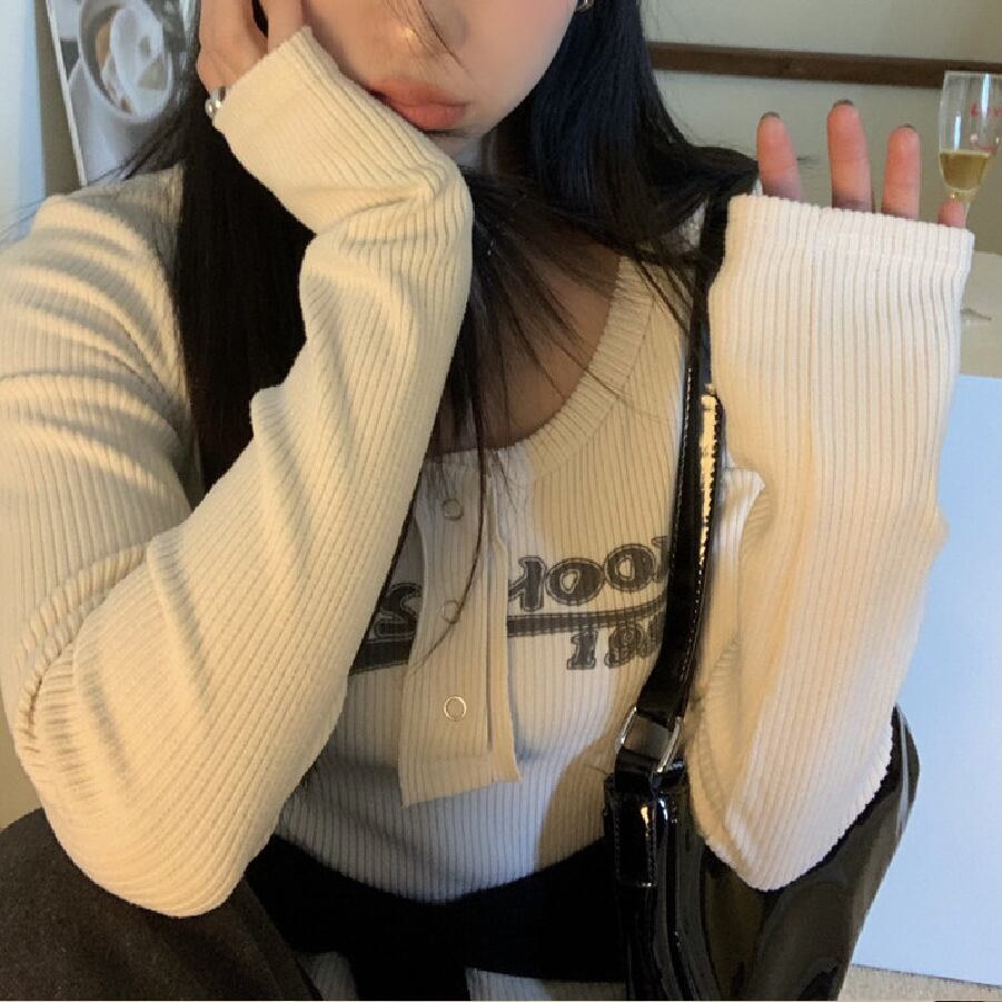 【韓国通販 dgo】ショートニットトップス 2カラー ホワイト/ブラック(W1635)
