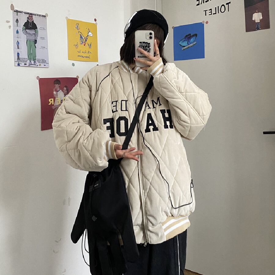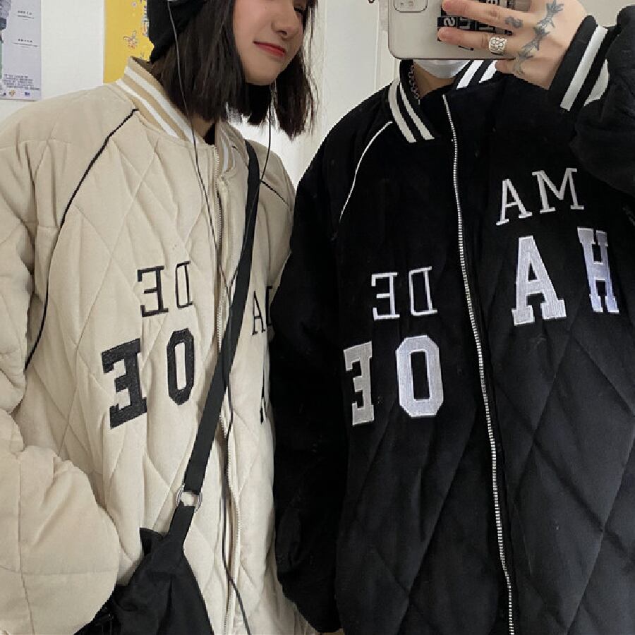 【韓国通販 dgo】ユニセックス キルティング バーシティジャケット 2カラー ブラック/ホワイト(M1646)気分はジャケット!