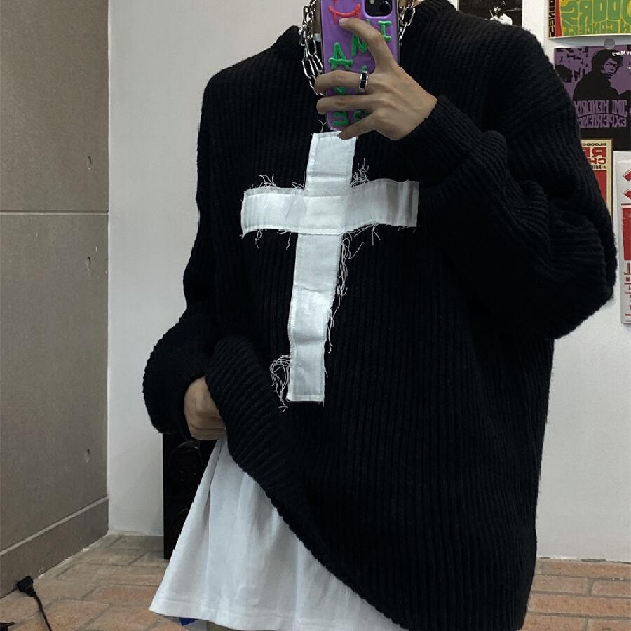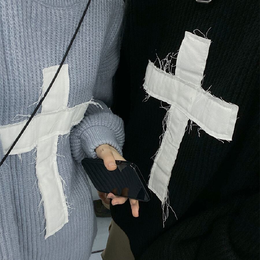 【韓国通販 dgo】ユニセックス プルオーバークロスセーター 2カラー ブラック/フォグブルー(M1647)