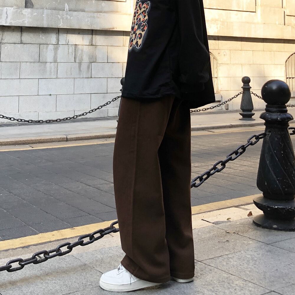 【韓国通販 dgo】ユニセックス ルーズストレートパンツ ブラウン(M1649)