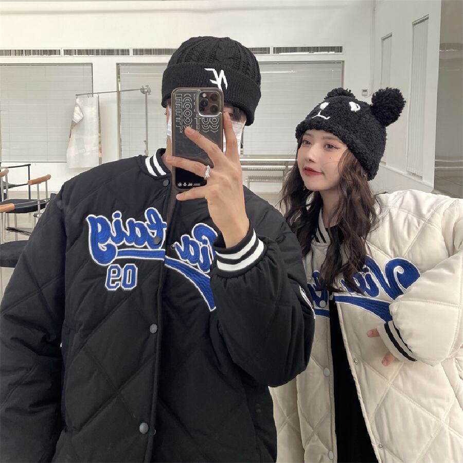 【韓国通販 dgo】ユニセックス キルティング バーシティジャケット 2カラー アイボリー/ブラック(M1654)気分はジャケット!