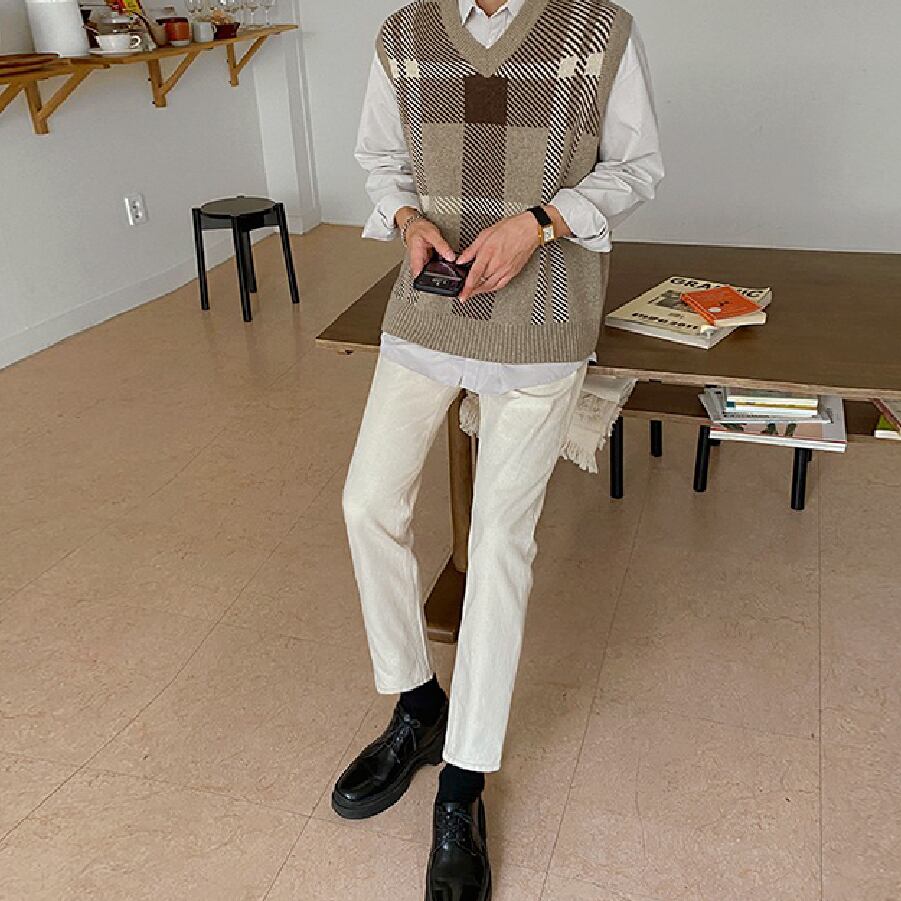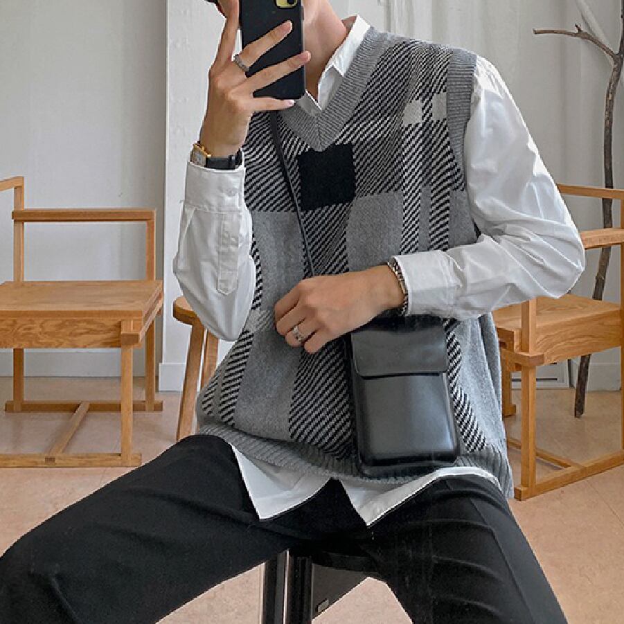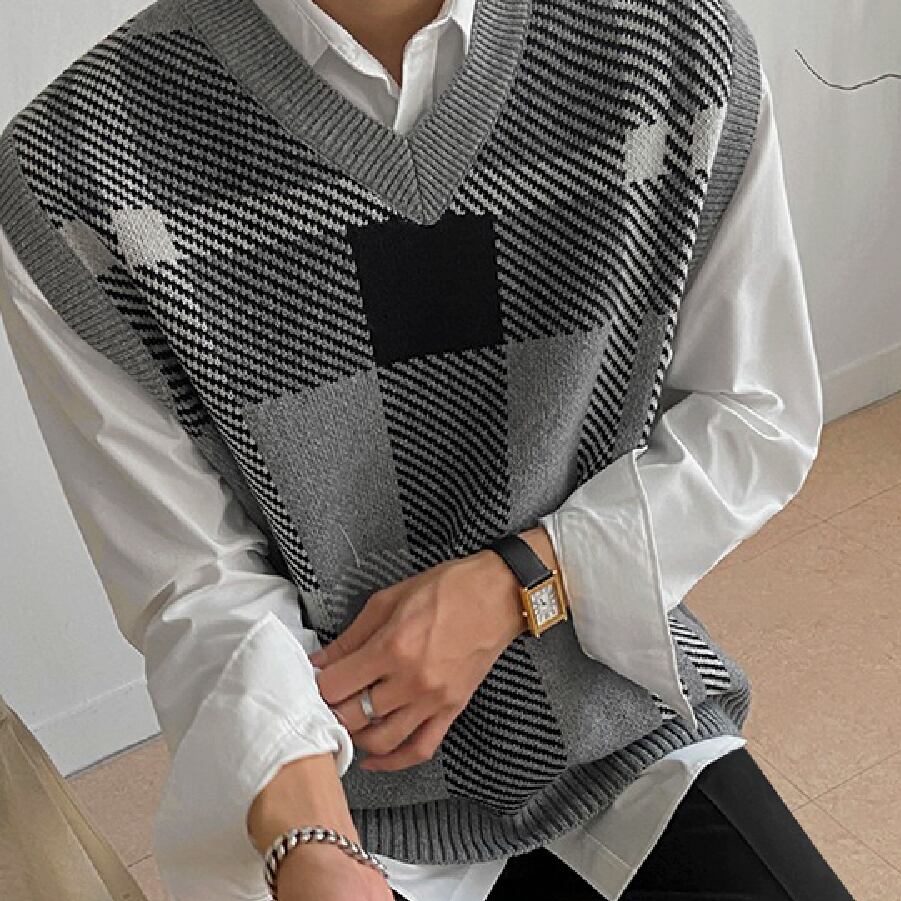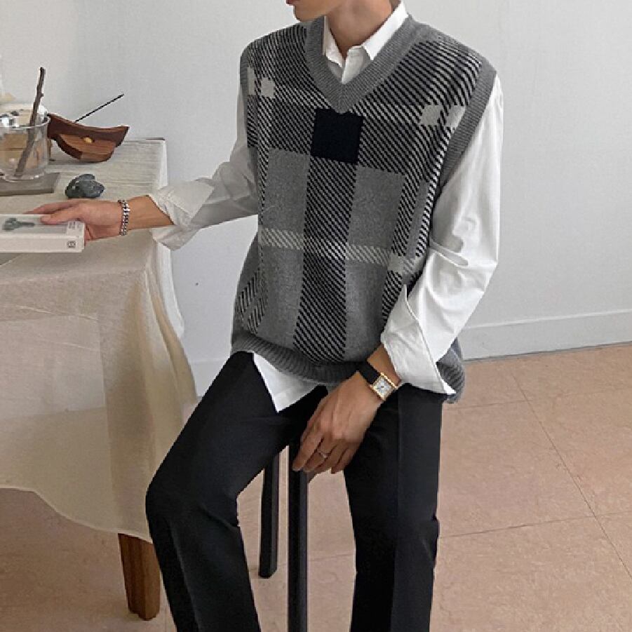 【韓国通販 dgo】Vネックニットベスト メンズ2カラー カーキ/グレー(M1658)