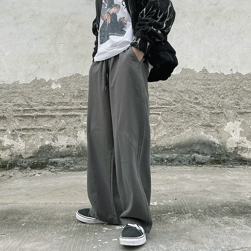 【韓国通販 dgo】ユニセックス カジュアルルーズストレートパンツ 3カラー グレーグリーン/カーキ/ブラック(M1661)