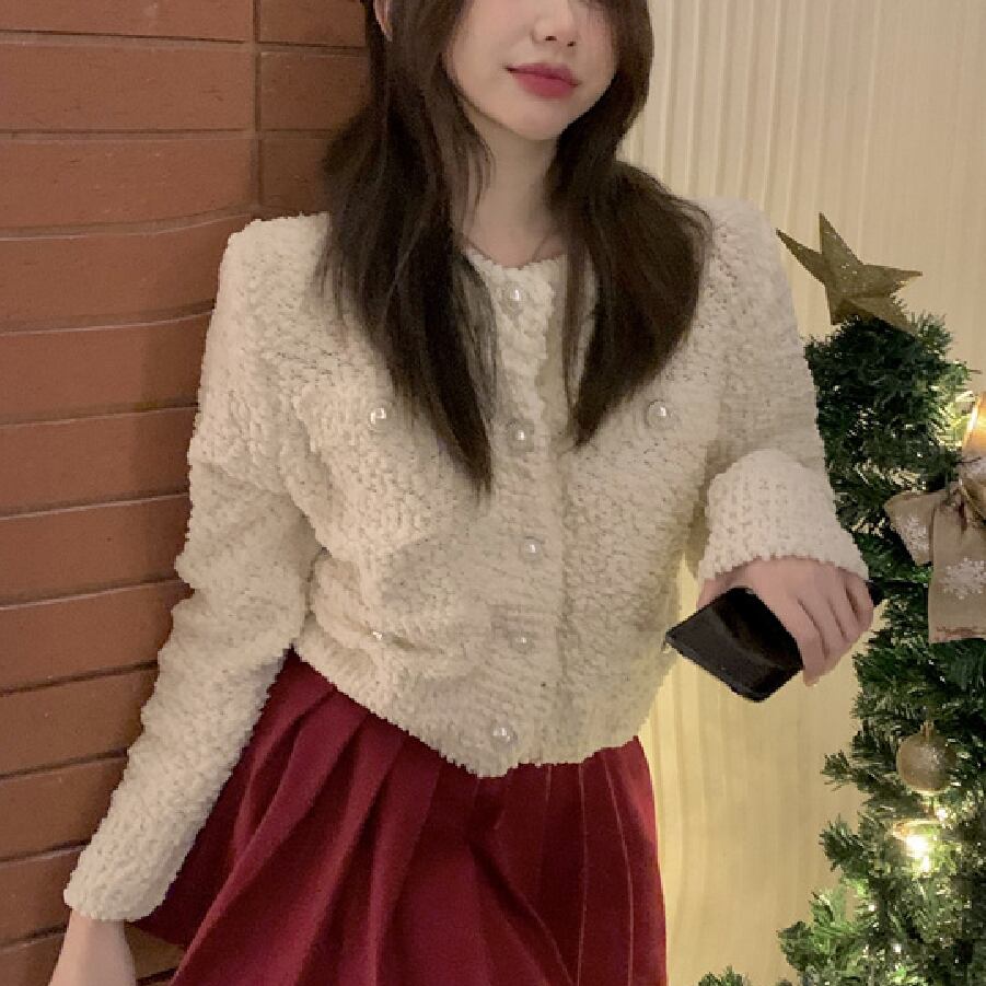 【韓国通販 dgo】ショートニットカーディガン レディース初春新作 ホワイト(W1647)