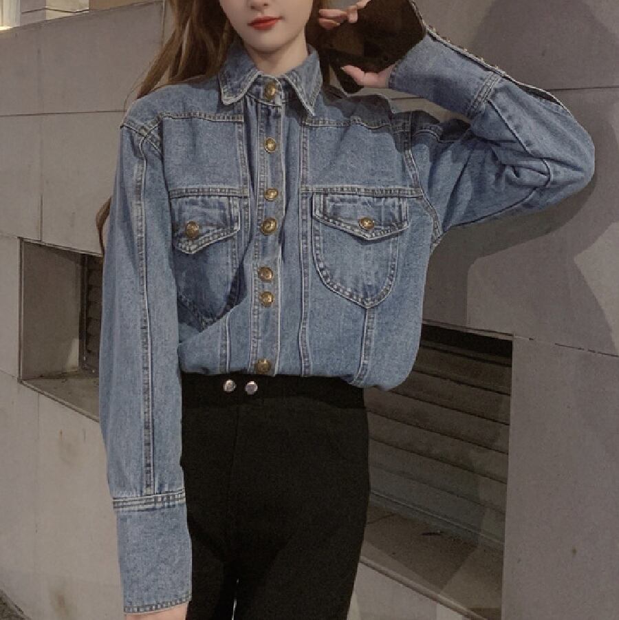 【韓国通販 dgo】ポロ襟デニムジャケット レディース春物新作 ネイビー/ライトブルー(W1657)気分はジャケット!