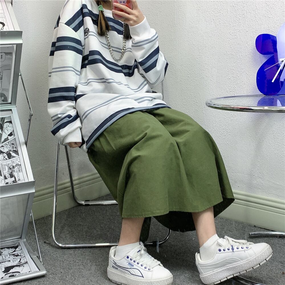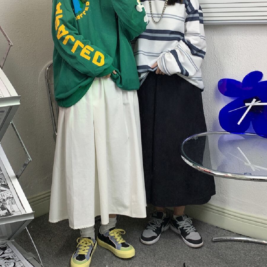 【韓国通販 dgo】ハイウエストミドル丈スカート 4カラー イエロー/グリーン/ホワイト/ブラック(W1661)