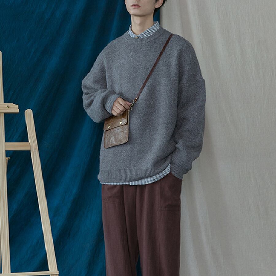 【韓国通販 dgo】ルーズラウンドネックニットセーター 3カラー ダークグレー/ブルー/ブラック(M1667)