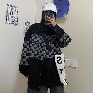 【韓国通販 dgo】ユニセックス ギンガムチェック デニムジャケット ブラック(M1670)気分はジャケット!