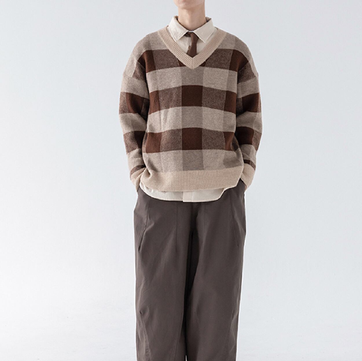 【韓国通販 dgo】ギンガムチェックVネックセーター 秋冬メンズ新作 ブラウン(M1679)