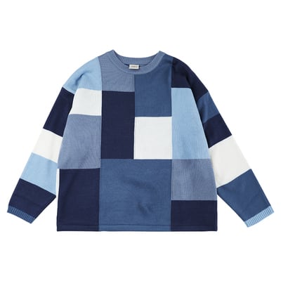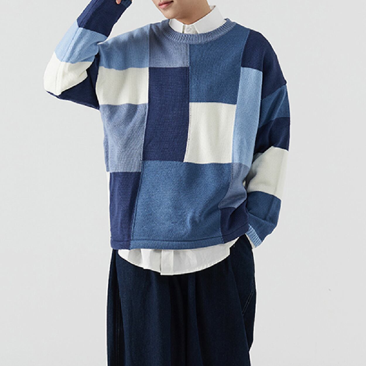 【韓国通販 dgo】チェック柄クルーネック ニット メンズ2カラー ブルー(M1682)