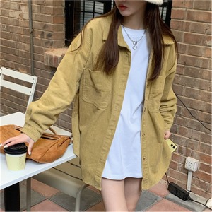 【韓国通販 dgo】ミドル丈ポロ襟コーデュロイシャツ ブルー/イエロー(W1719)