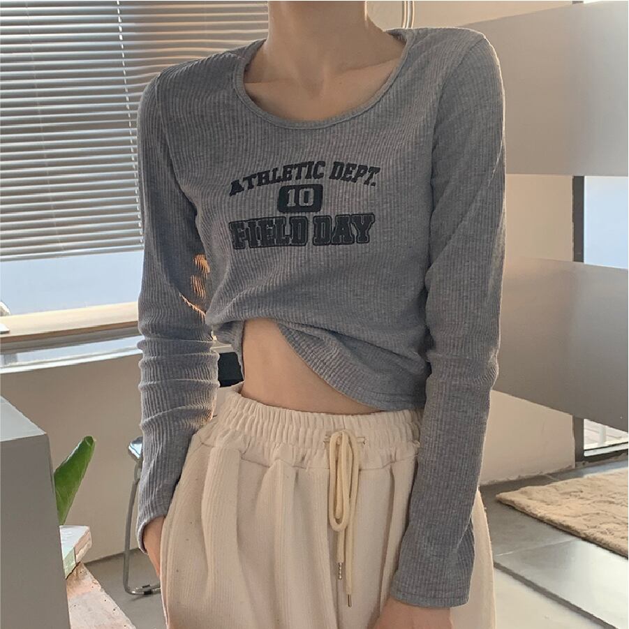 【韓国通販 dgo】レタープリントリブトップス 2カラー ホワイト/グレー(W1714)