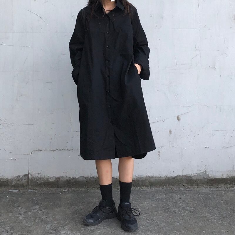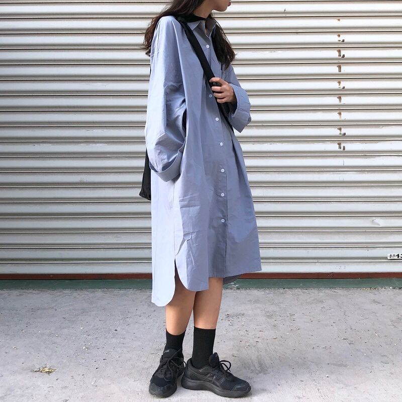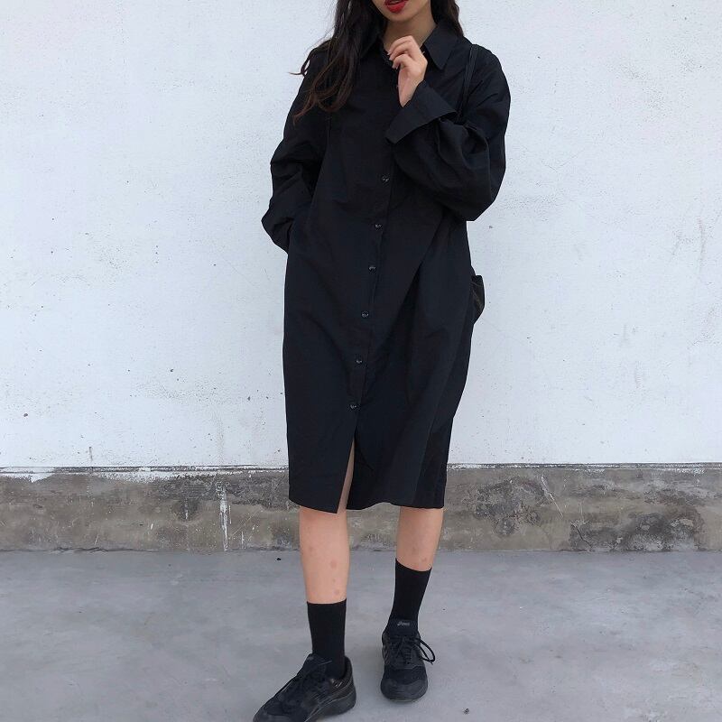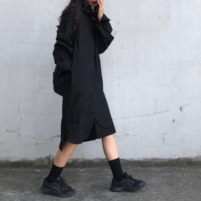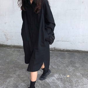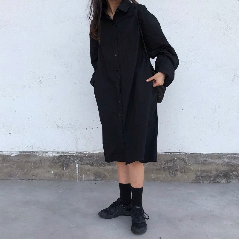 【韓国通販 dgo】ポロ襟シャツワンピース 2カラー ブルー/ブラック(W1712)