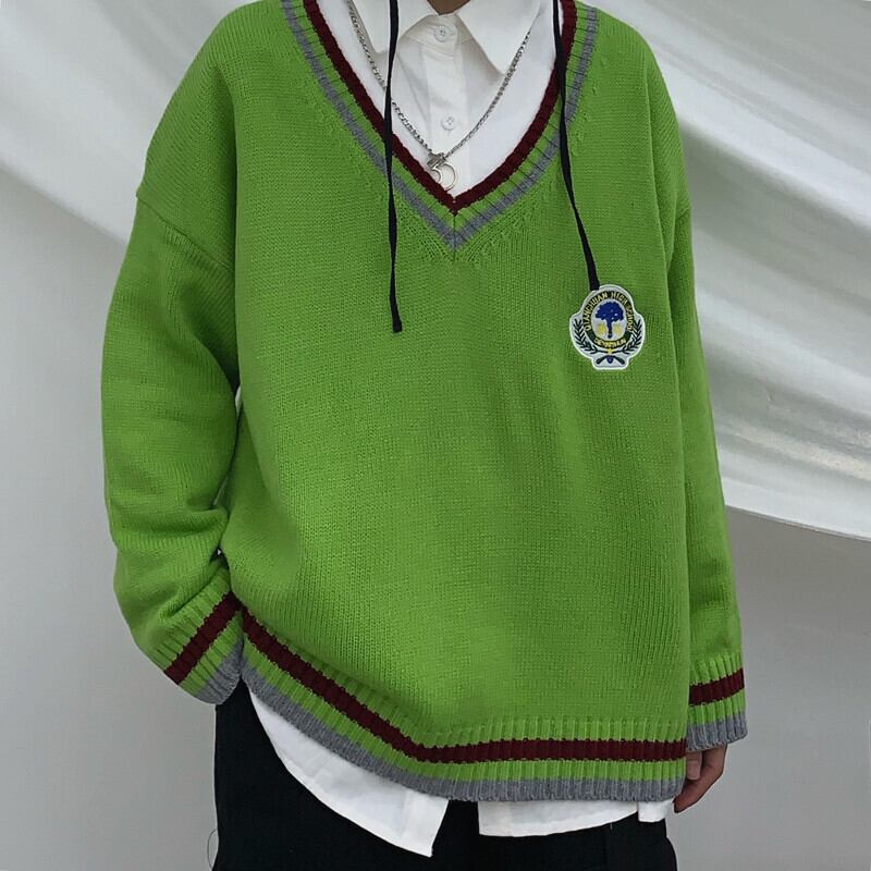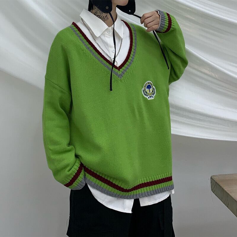 【韓国通販 dgo】ドロップショルダー ワッペンVネックニット グリーン(M1704)