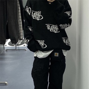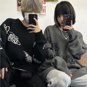 【韓国通販 dgo】ユニセックス ルーズレターカップルニット 2カラー ダークグレー/ブラック(M1702)