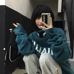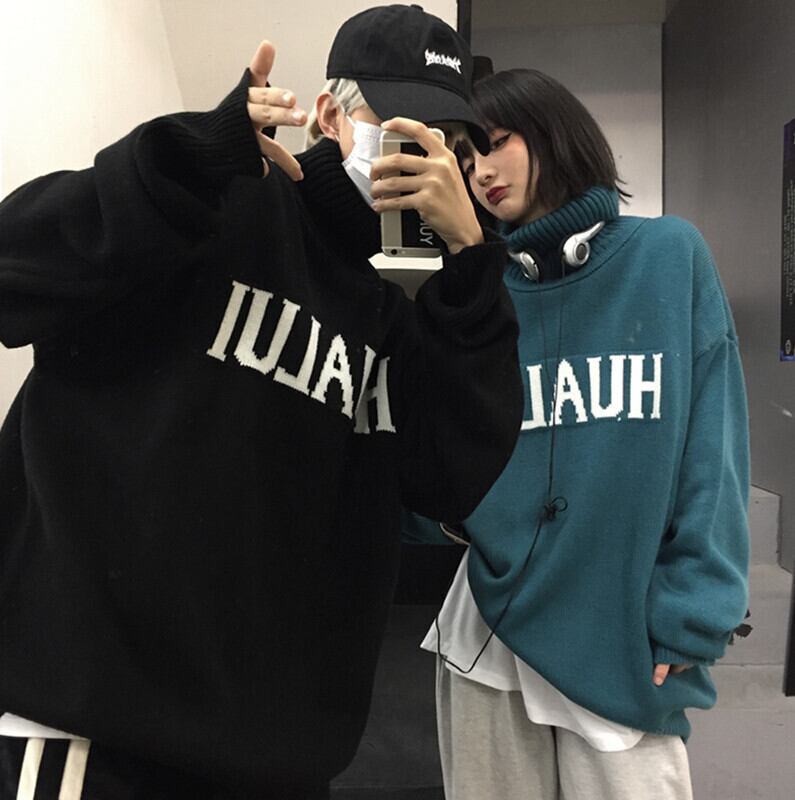 【韓国通販 dgo】ユニセックス シンプルレタージャカードニット 2カラー レイクグリーン/ブラック(M1701)
