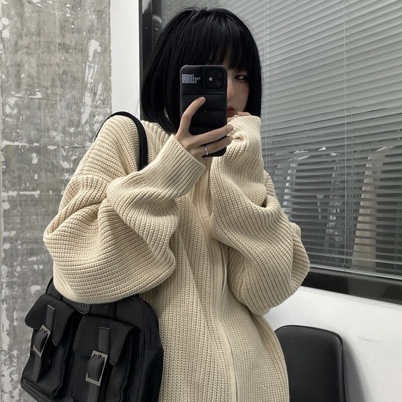 【韓国通販 dgo】ユニセックス カップルZIPニットカーディガン 3colors アイボリー/ブラック/グレー(M1698)