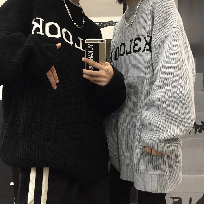 【韓国通販 dgo】ユニセックス ジャカードカップルニット 2カラー ライトグレー/ブラック(M1695)
