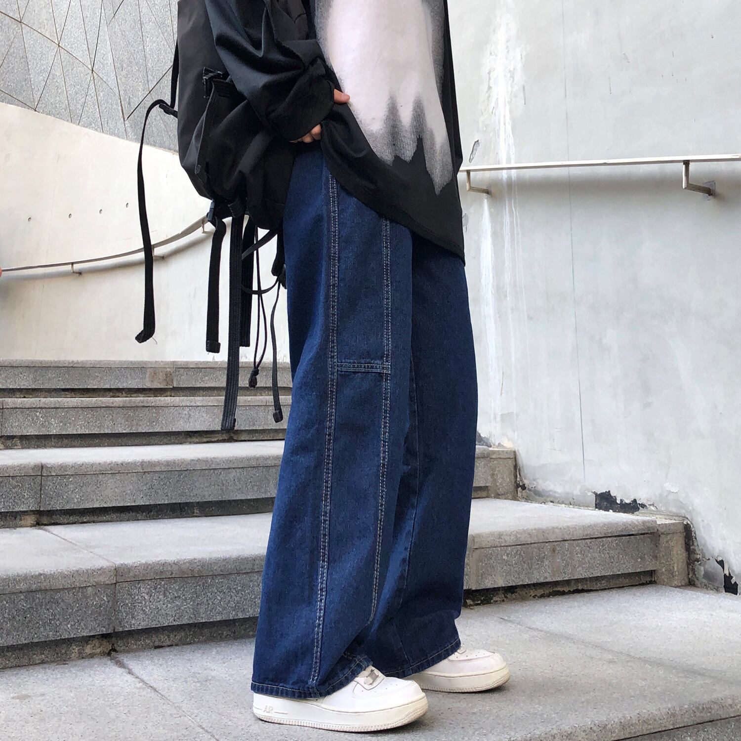 【韓国通販 dgo】カジュアルデニムジーンズ メンズ&レディース ネイビーブルー(M1694)
