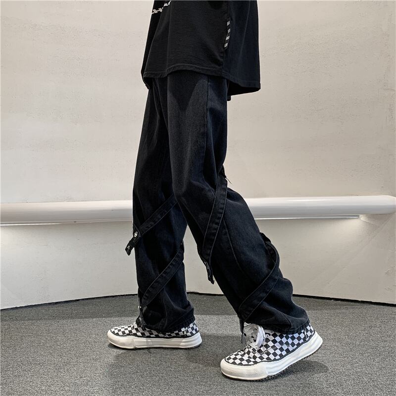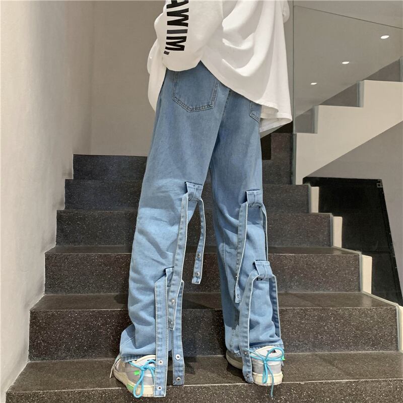 【韓国通販 dgo】ストラップストリートジーンズ 2カラー ライトブルー/ブラック(M1692)