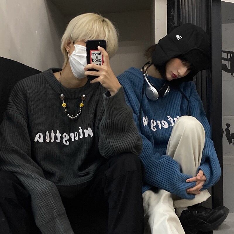 【韓国通販 dgo】ユニセックス ルーズオーバーサイズニット 2カラー ブルー/ダークグレー(M1690)