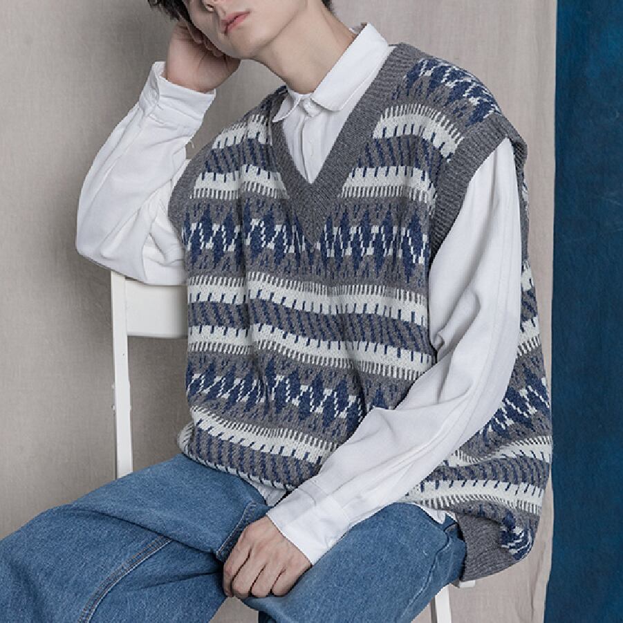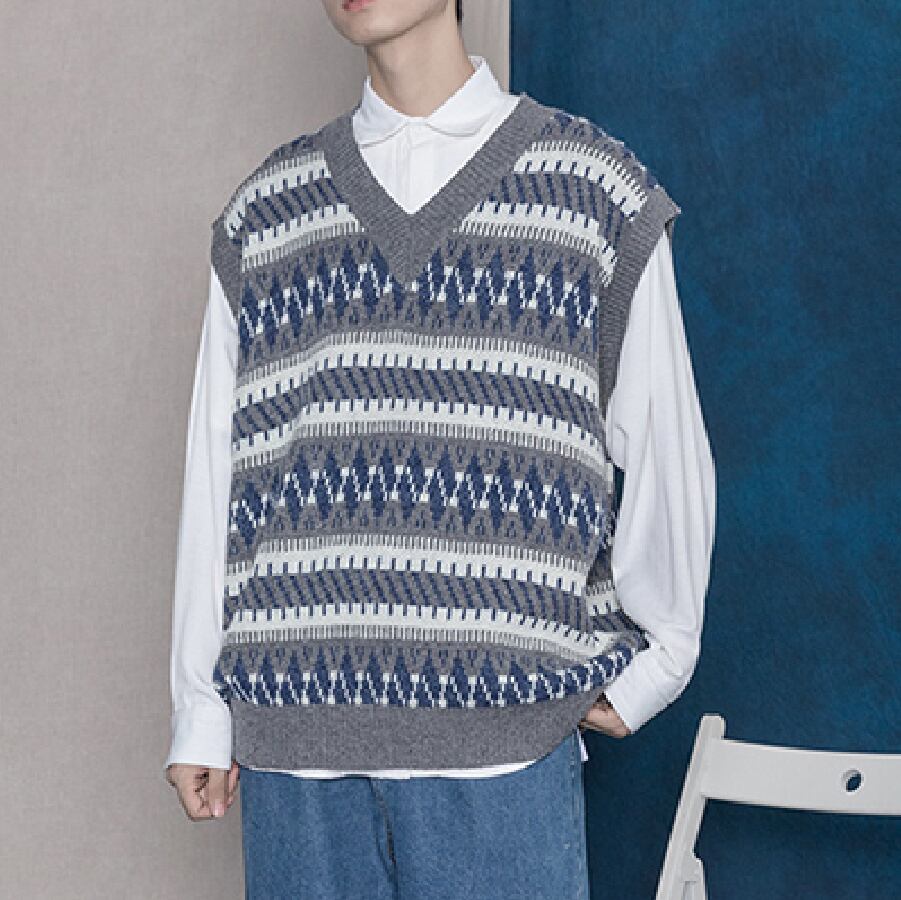 【韓国通販 dgo】ダイヤモンドチェック ニットベスト メンズ新作 グレー/ブルー(M1689)